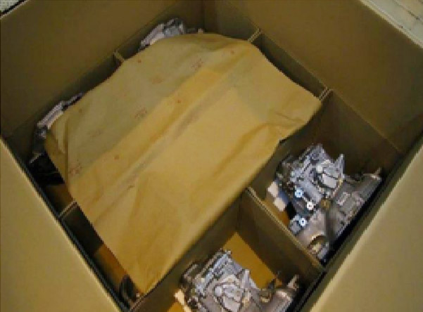 4、包装过程---将含有缓蚀剂的面朝向金属包装,不覆膜防锈纸可作为金属产品间垫层隔材使用,以免其他材质阻隔材料含S、CL化学成分,影响防锈效果