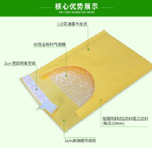 内层气泡膜,外层牛皮纸,封口采用高强度热熔胶